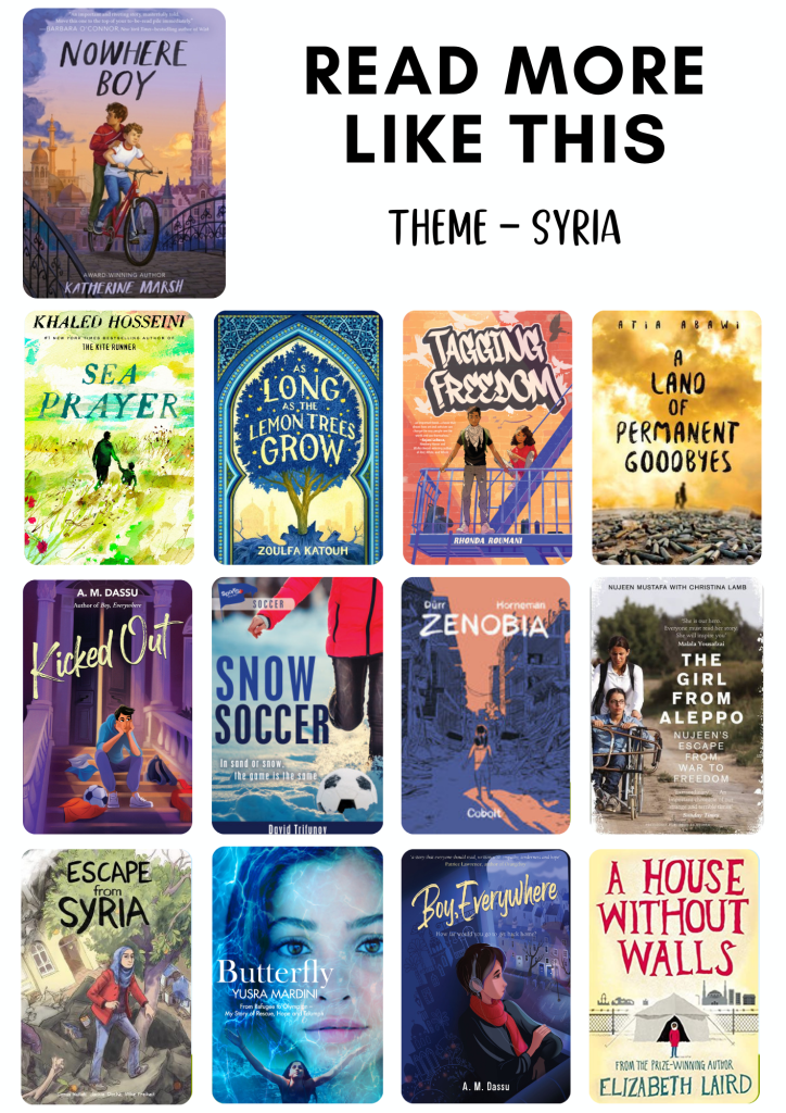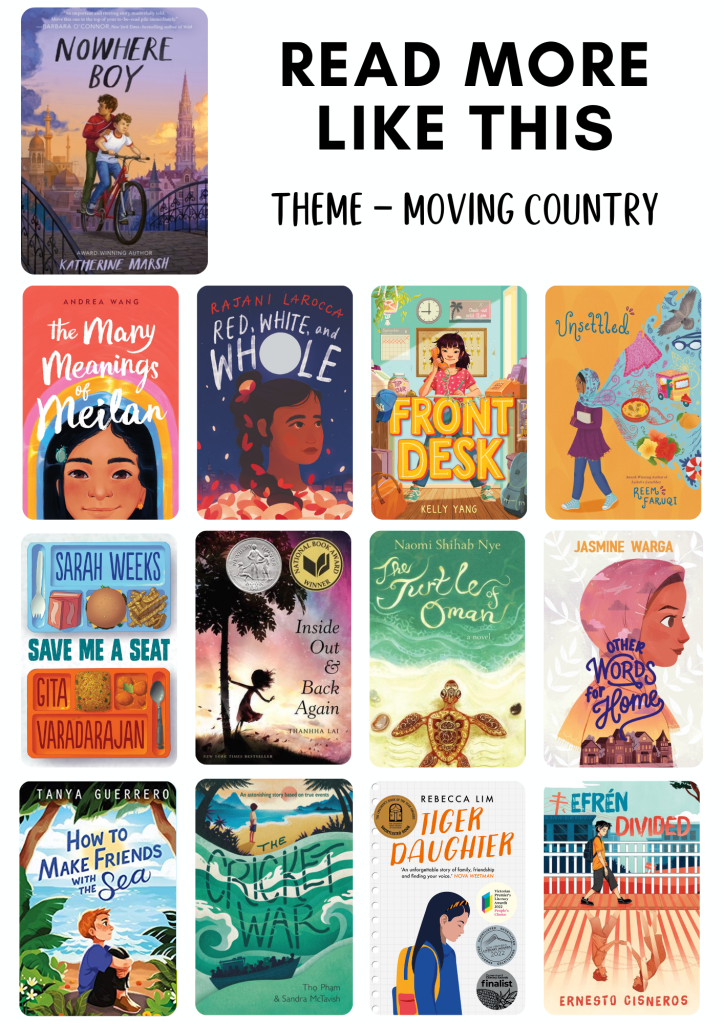 Here are a few of the posters I’d created when our G8 students were reading “Nowhere Boy” by Katherine Marsh to encourage them to “read around” the main themes of the book.