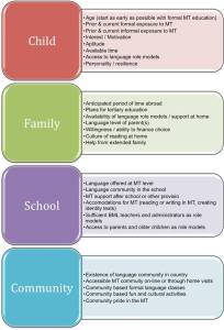 Dixon, L. Q., Zhao, J., Quiroz, B. G., & Shin, J.-Y. (2012). Home and community factors influencing bilingual children’s ethnic language vocabulary development. International Journal of Bilingualism, 16(4), 541–565. doi:10.1177/1367006911429527