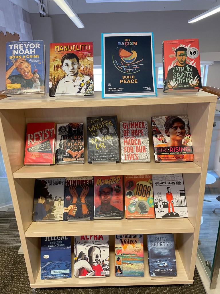 The read around posters are shared with our teachers of various subjects and generally they print them out in A3 size and put them either on their walls, doors or display boards outside their classrooms. Sometimes, when students come into the library with their ELA or Social Studies teachers I’ll have the books laid out on tables for them to have a look at and borrow.