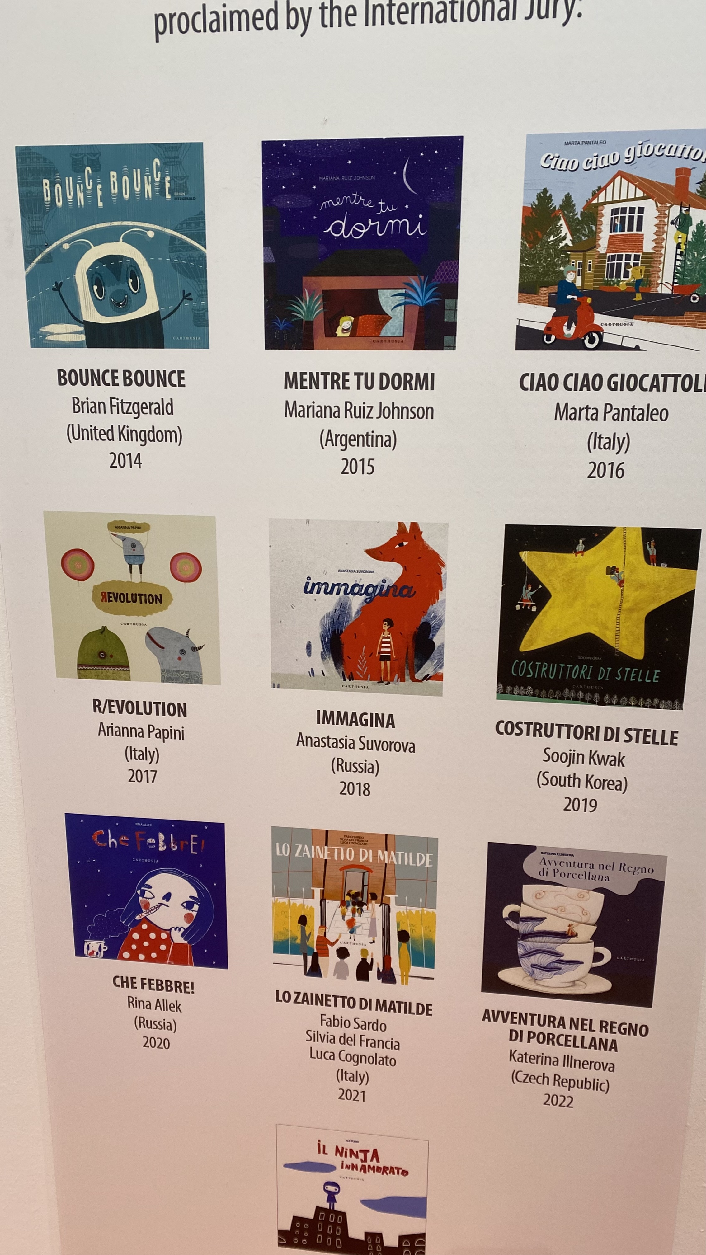 There is a special place in my heart and every library I’ve had the pleasure of working in for “wordless” or “silent” books, and the fair didn’t disappoint in that regard. Of course the highlight is the Silent Book Contest – Gianni De Conno Award and the exhibitions of the artwork around the award, as well as the previous years award winners. These are just the best books to have in your library for accessibility, thought provoking conversations and writing prompts.