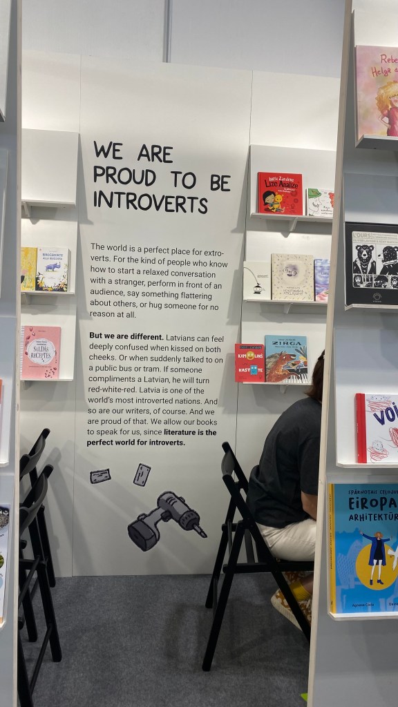 One of my book related highlights this year was being able to attend the Bologna Children’s Book Fair in April 2024. It’s been on my radar for years and the fact it took place during our school vacation and I could join a bunch of fellow librarians who were similarly disposed made it less of a “thing” to attend. For I am not fond of very large crowds in overwhelmingly big exhibition spaces (thank heavens for the Latvians who are proud to be introverts and celebrated that in their stand!) . Below are a few of my thoughts on the event.