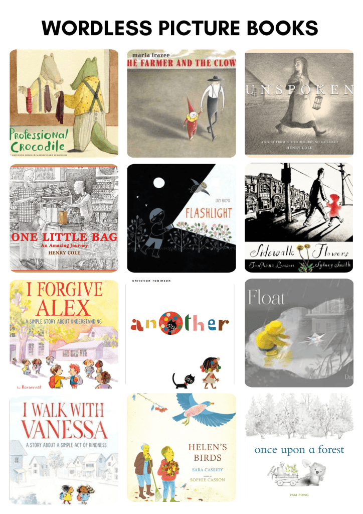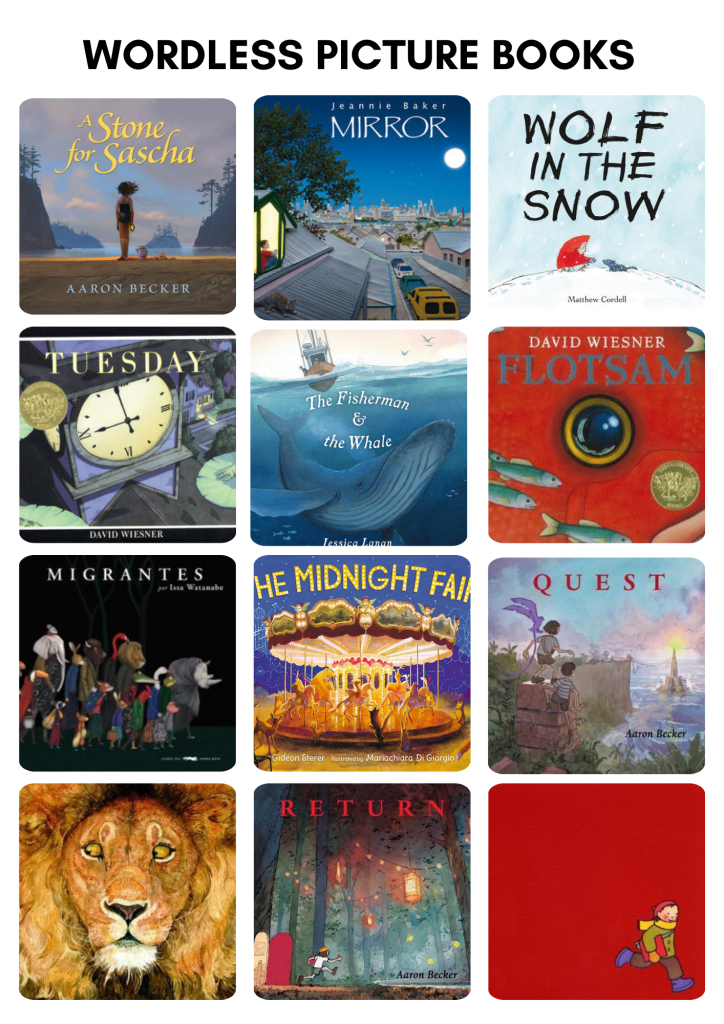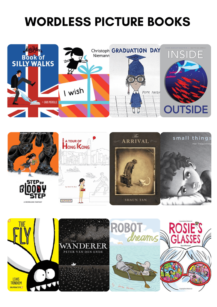 Wordless or silent books are an amazing resource to have in your collection. You can read more about IBBY’s Silent Book project. They provide excellent prompts for creative writing, for quiet contemplation and for vocabulary and sentence structure development for language learners.