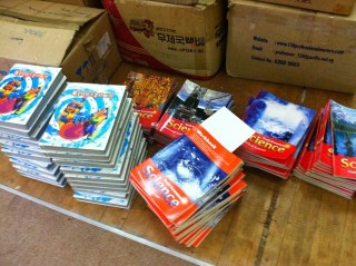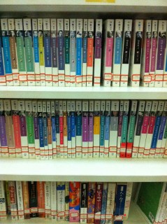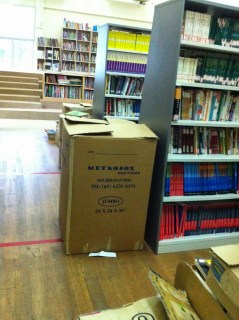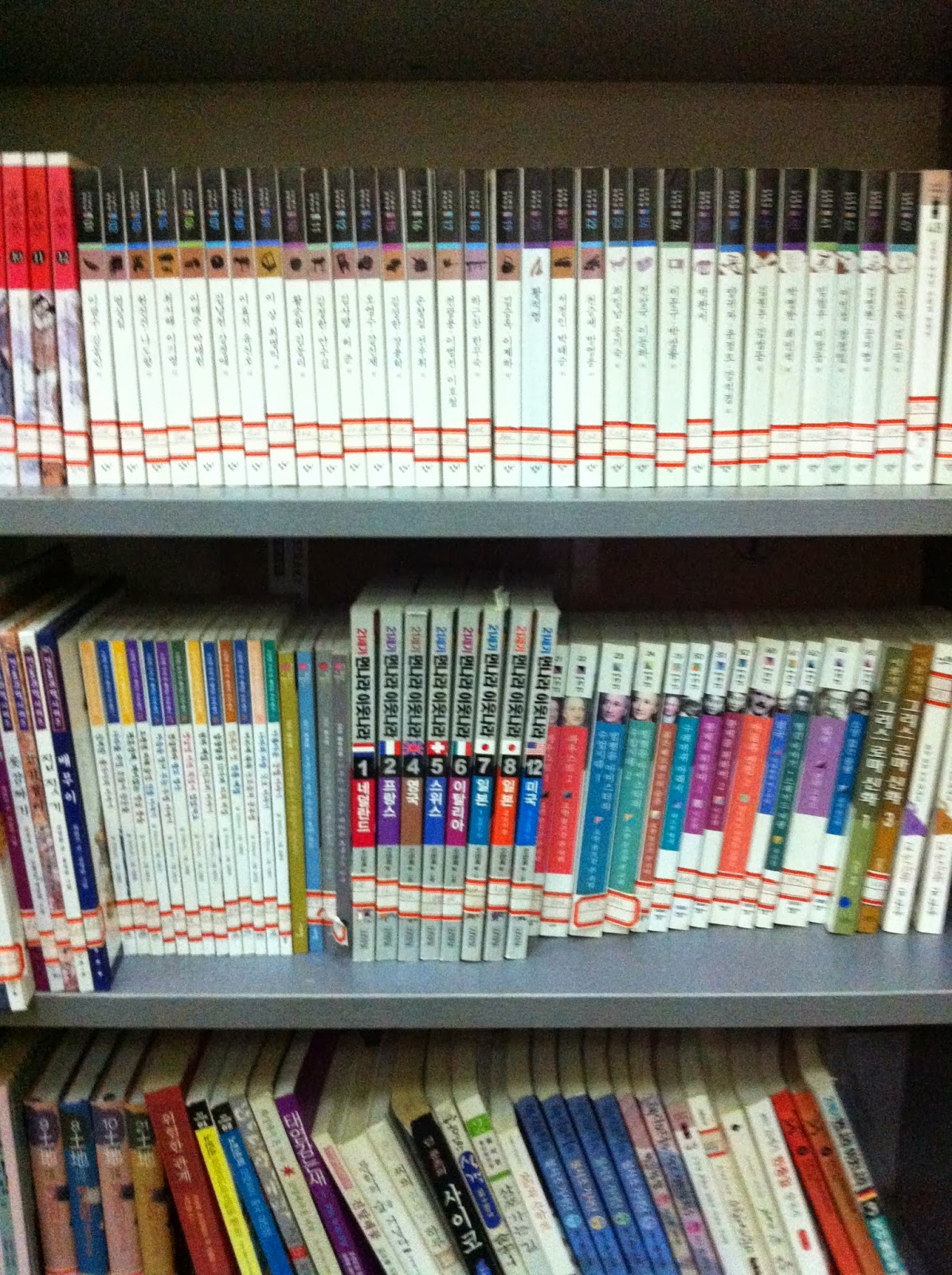 The biggest issue right now is the arrival of the NLB books next week and we still haven’t managed to locate the old catalogue, nor the cataloguing system, nor does it look like anything will be in place on time. That called for a quick meeting with the HOS to talk about a plan B. Which had to be quick and easy and cheap. I brought along my laptop with my home system – yes ironically at this point, my home books and CDs and DVDs are better catalogued than the schools. I’ve been using Delicious Monster 2.0 and quickly upgrade to 3.0 in order to show the potential for doing something, that would be better than handwritten lists and checking. At $25 it was somewhat a no-brainer, but it had to happen and be confirmed. I also broached the question of cleaning … (captive audience) and got permission to exchange some of the duplicate Korean and Chinese books with Ms. Katie for some of her surplus donated books that were needed, particularly in the primary section. At this rate of shelf and book and box of book moving I’m going to be able to cancel my subscription to the gym!
