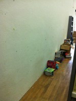 In order to make the library shelves a bit more accessible physically we decided to move the magazine shelves out. Another factor was that due to the humidity, anything displayed on them started to have curling corners. Since we wanted it done sooner rather than later, we just rolled up our sleeves and played moving ladies ourselves. As you can see from the photo it’s looking good – albeit empty. These are the shelves where the NLB books which arrive next Thursday (whoopee) will be located so they don’t get all mixed up with our own collection.