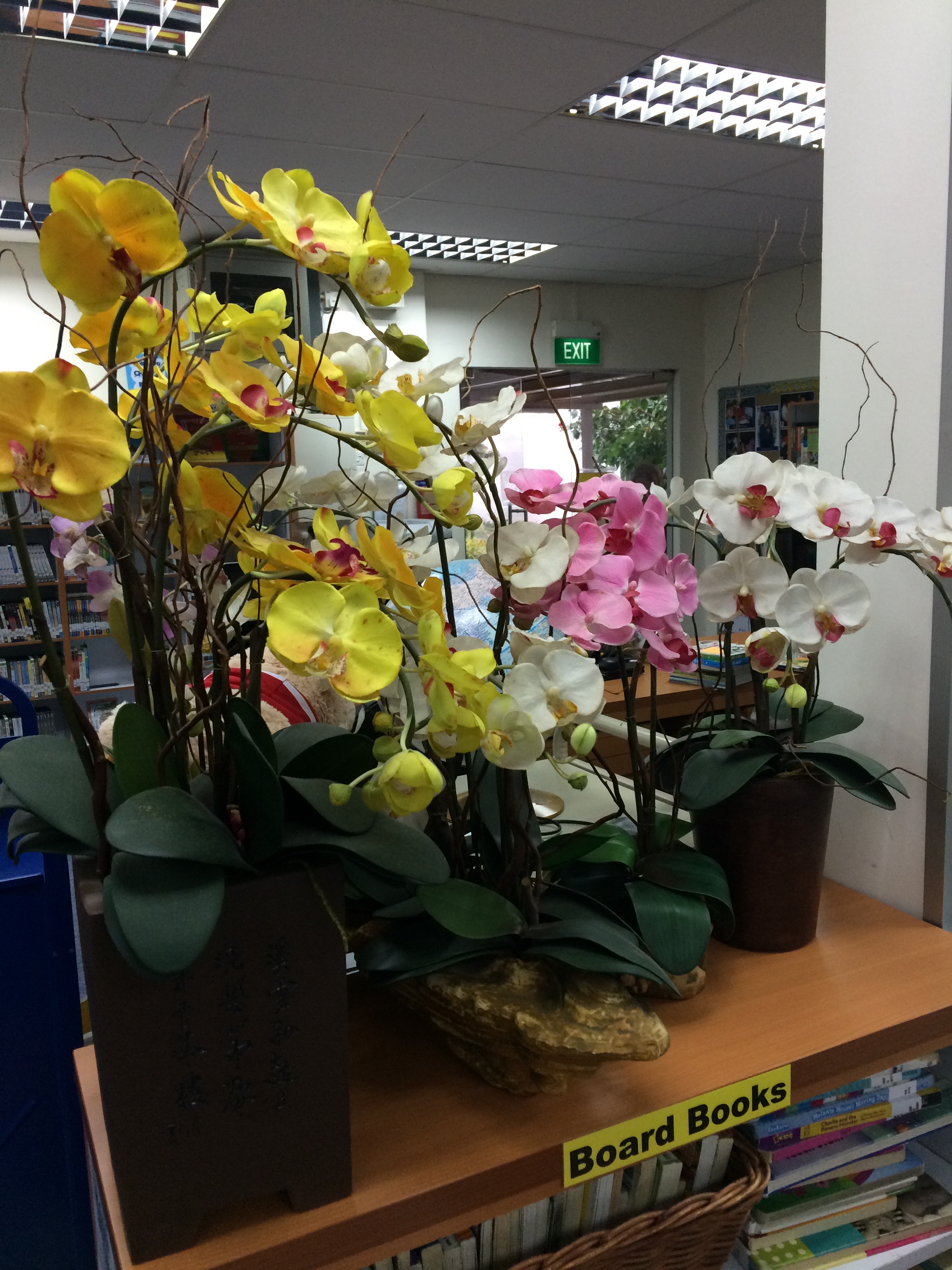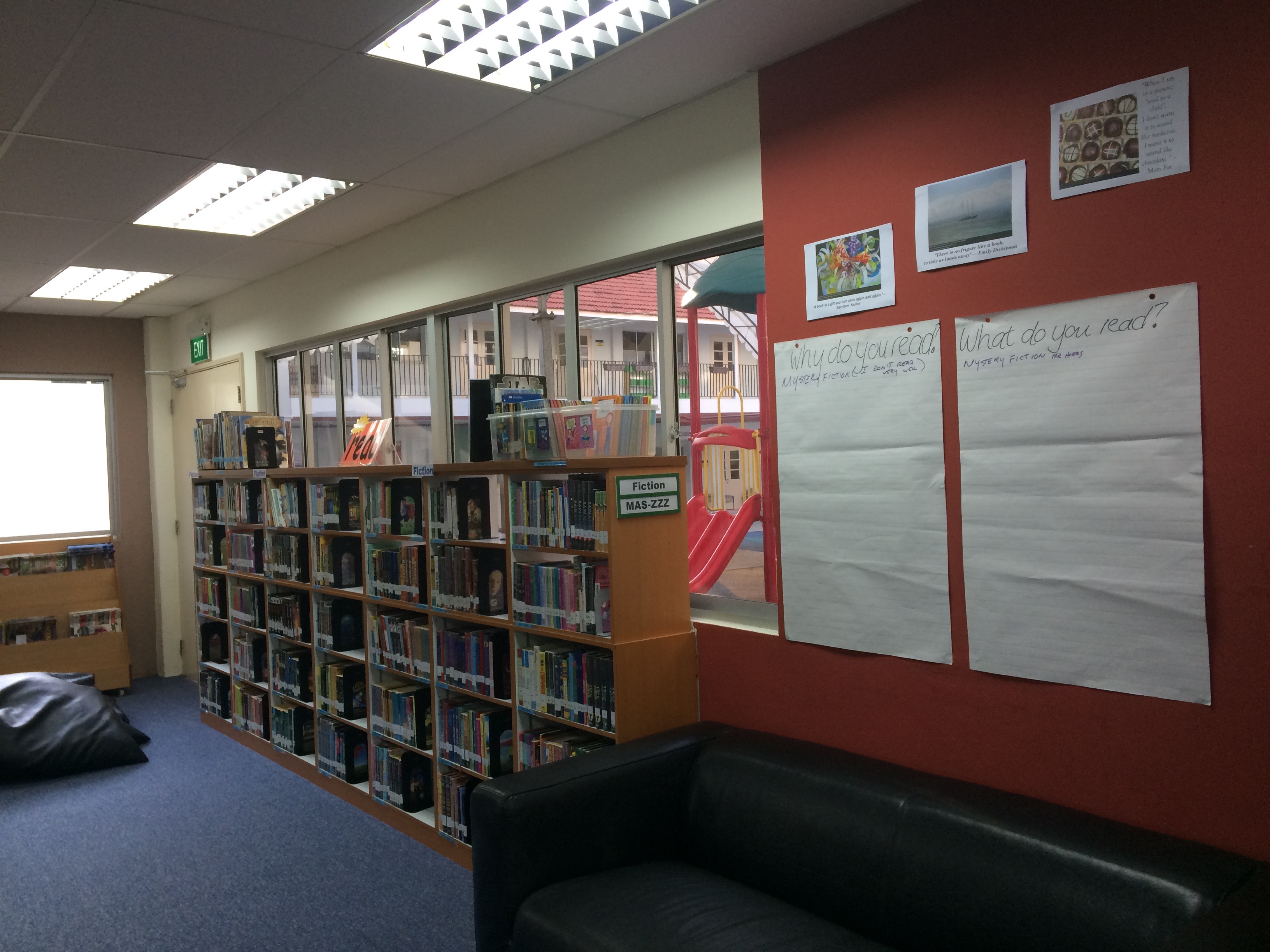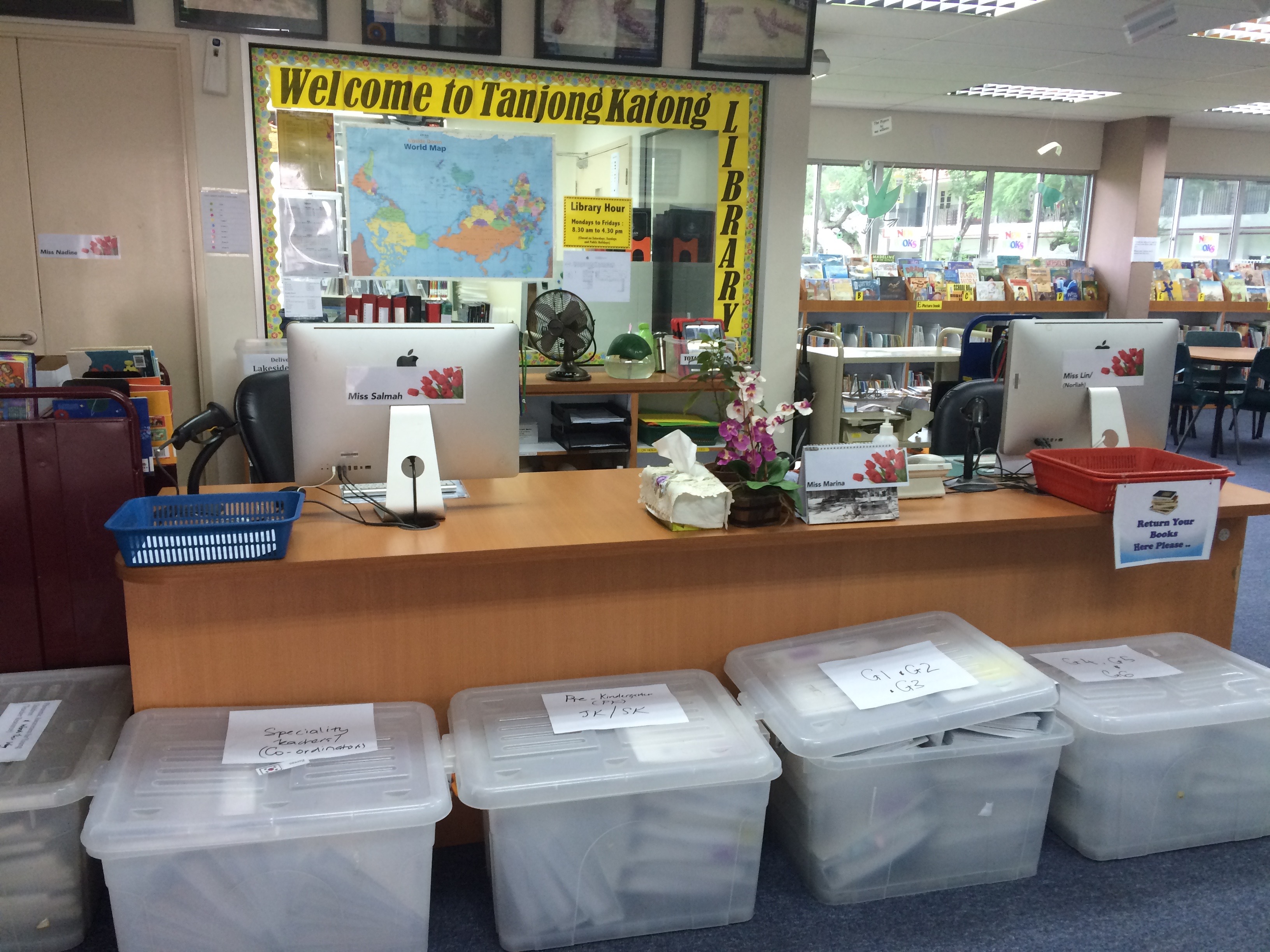 It’s circular. It looks nice. But one of the first things they warn you against in library design 101 as it’s not very practical. And on the right side, instead of having the circle go to the wall I insisted out of health and safety concerns (we’re a primary library) that we could “get out” to attend to the “floor” very quickly. So it had to be open on both sides. So that means we lost about 50cm on the side. Which meant that the 3 chairs are pretty squishy next to each other. Which is good and bad – good because it means that it’s not really comfortable so you’re kind of forced to be up and moving and on the floor and doing people/book type things. Not so good because when 3 of you need to be there for a big class or year end check ins, there just is not enough space.