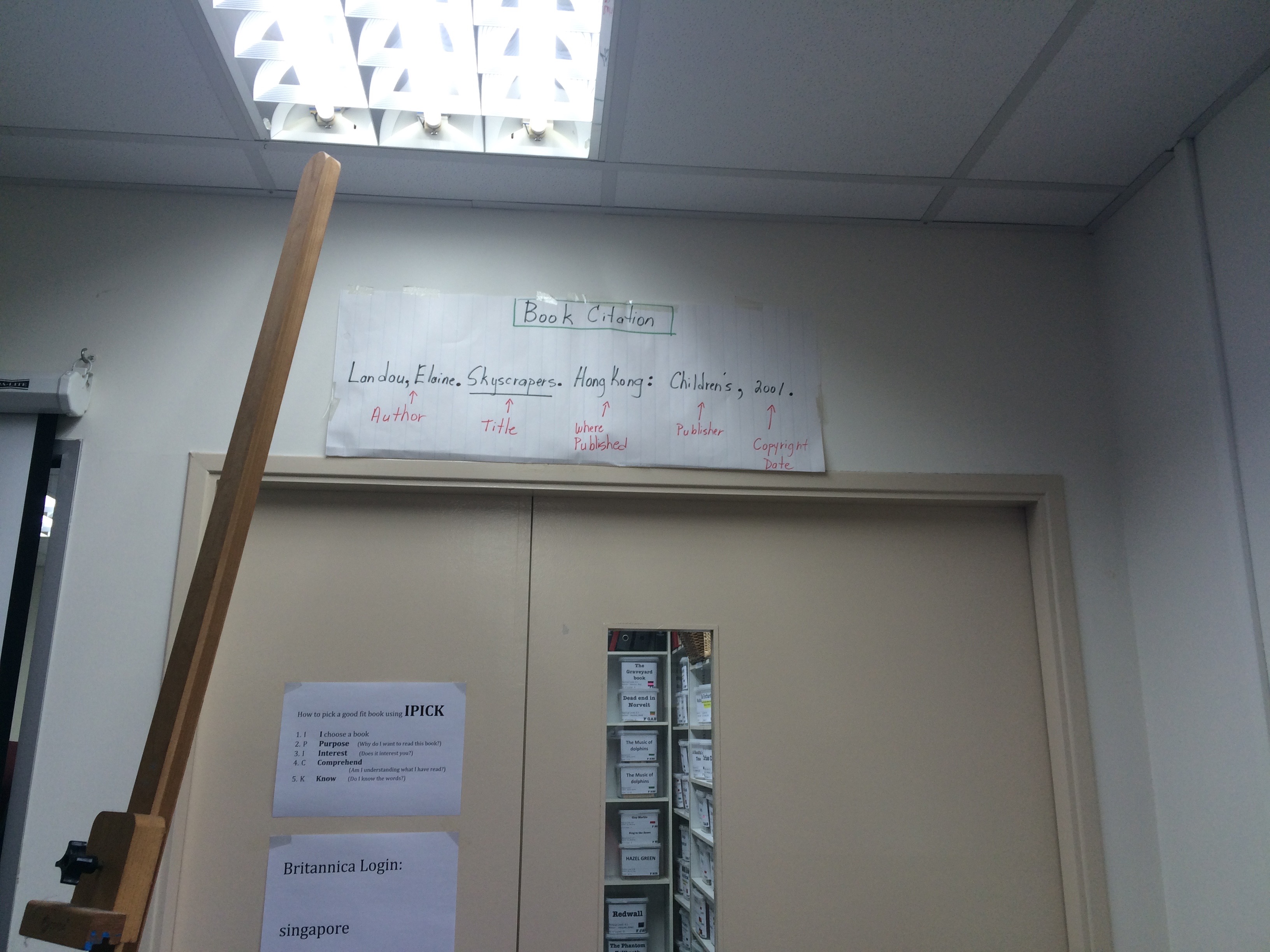 Part of signage is display space, and I’m really happy with that. The thin slats at the door and space above allow really flexible displays of books and student work. And I love my pillar disguising round display space. Yes the variable signage above the slats could be better than just print outs on paper – ideas?