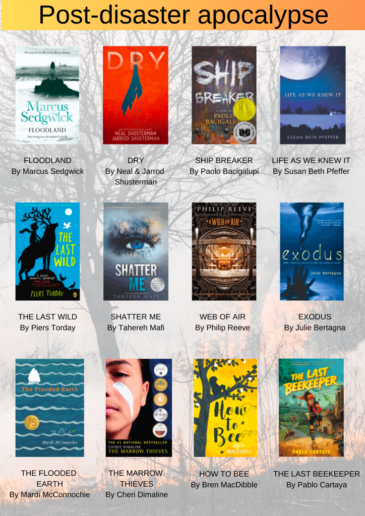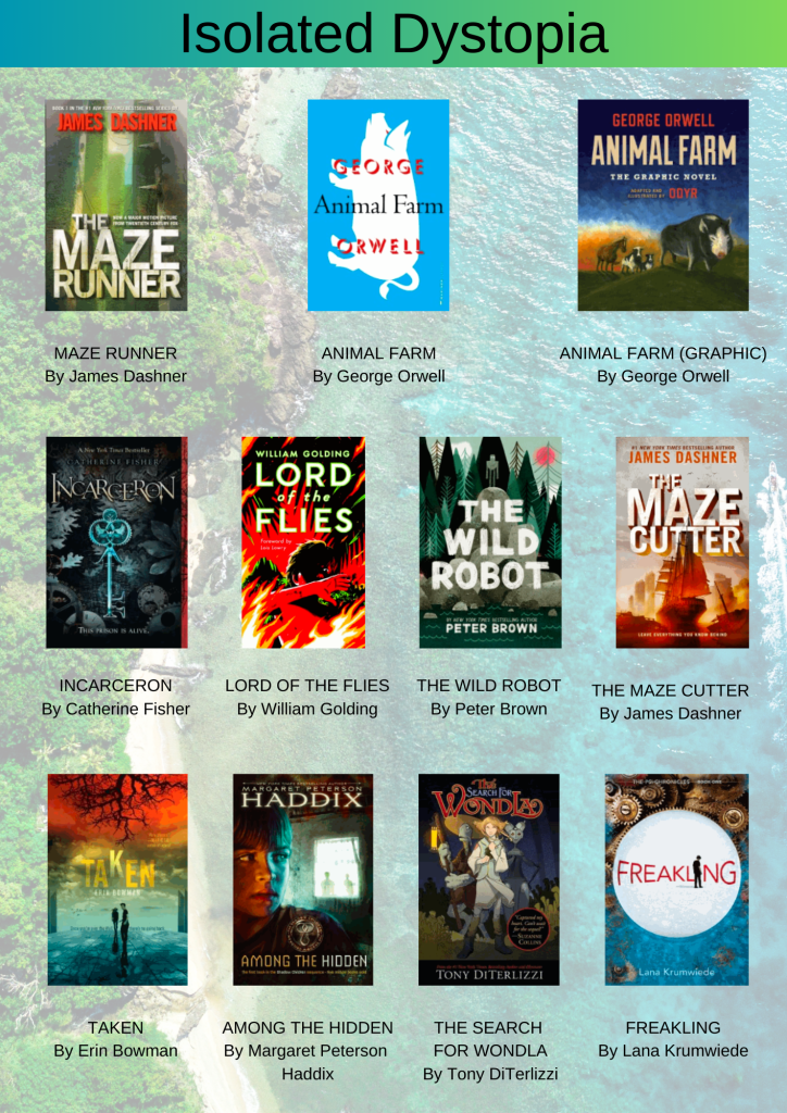 Our Grade 7 students do a dystopian unit in their English Language Arts (ELA) class, and I came across this nifty categorisation in a poster by Jeri Hurd (sans the sub-pages / images). Since I find our students are increasingly stimulated by imagery, rather than just text, I adapted the poster to include 7 sub-posters combining the books in our collection to the suggestions.