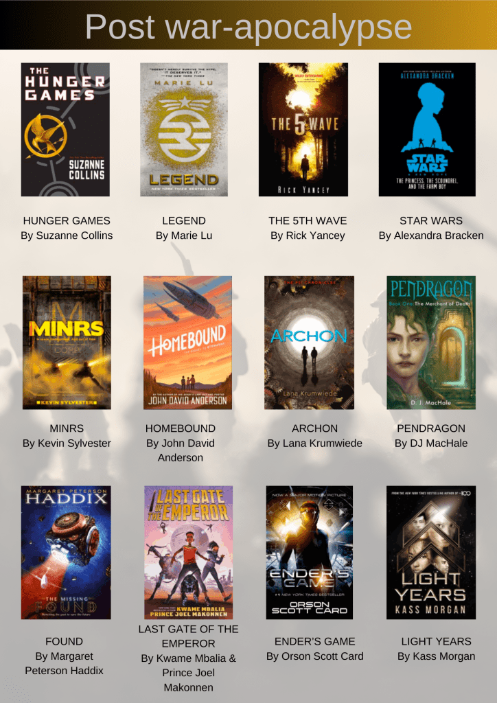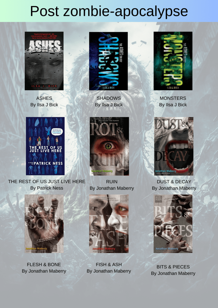 It’s not always easy to find middle grade appropriate science fiction, so this collection includes some YA works – particularly in the “Zombie apocalypse” section.