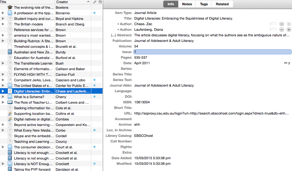 This is just one way of getting organised. There are many ways and many tools, you need to experiment and find your own way as to what is comfortable for you. For example, one lecturer suggested we just print the first page (with the abstract) of each article and make a summary on that page. If anyone has further tips and tricks, please add comments to this. I’d also like to learn of other ways to make things easier.