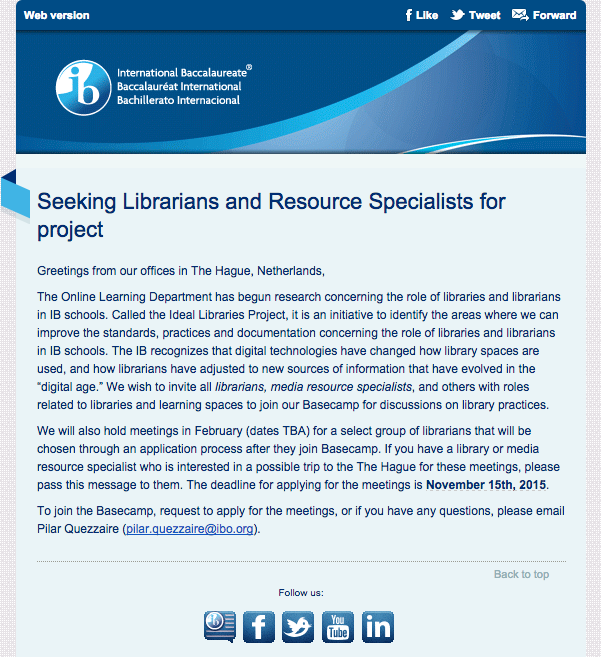 But how do we get out of this loop and spiral upwards? I’m one of the 407 librarians participating in the “Ideal Libraries Project” of the IBO. Even in that (private) organisation nothing is mandated or agreed around teacher-librarians. Yes there are recommendations, but judging by the responses from the cohort the interpretations are wide.